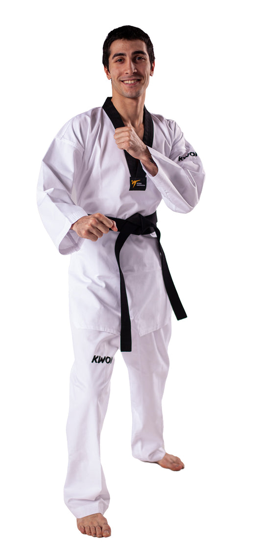 Uniforme de Taekwondo KWON (R) Grand Victory avec broderie au dos, revers noir
