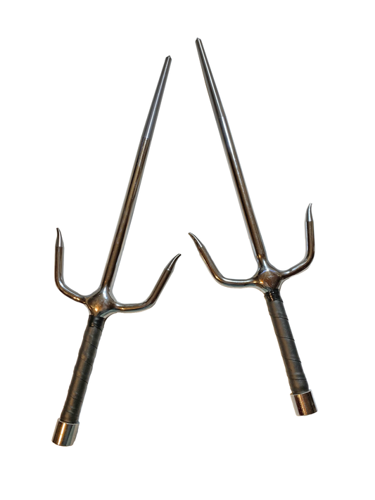 SET Fourchettes Sai chromées avec étui à armes - argent 48,5 cm (paire) - Manche enroulé forme ronde