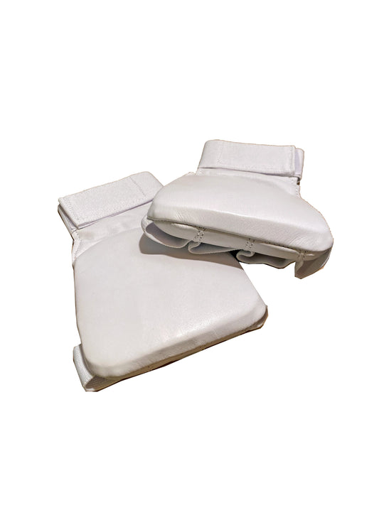 TEKKA BUDO Karate Faustschützer flach weiß - Hand Mitt Echtleder - Fingerschlaufen mit Elastikband
