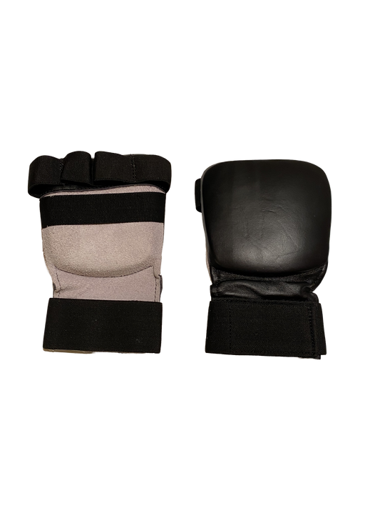 TEKKA BUDO Karate Faustschützer flach schwarz - Hand Mitt Echtleder - Fingerschlaufen mit Elastikband