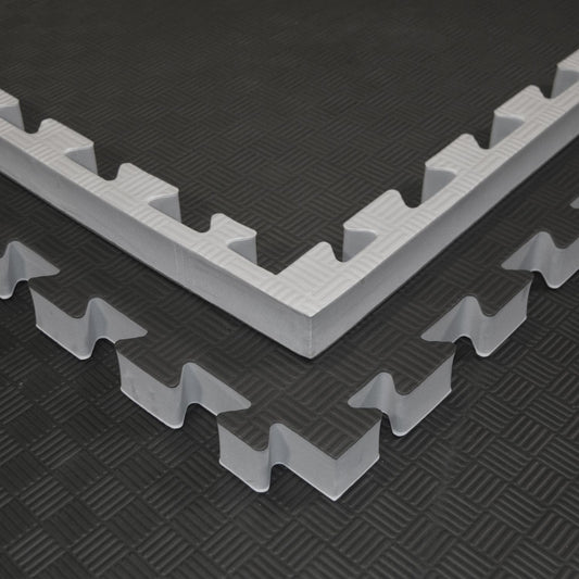 TEKKA BUDO Kampfsportmatten SET - grau-schwarz - 100 x 100 x 2 cm - Verzahnte Ränder - Wendematte, Trainingsmatte - Judo, Karate, Ju-Jutsu, Taekwondo