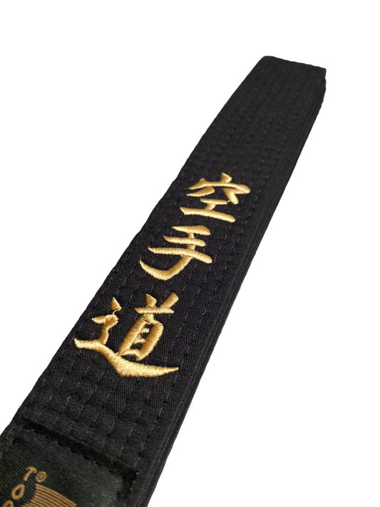 TEKKA BUDO Karategürtel schwarz - Bestickt - Karate Do - Schriftzeichen Bestickung gold - Schwarzgurt Kanji japanisch