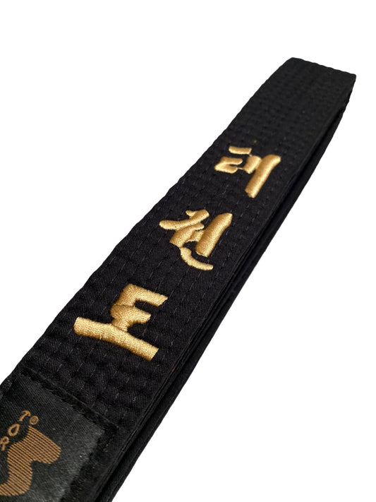 TEKKA BUDO Taekwondogürtel schwarz - Bestickt - Schriftzeichen Bestickung gold - Schwarzgurt koreanisch