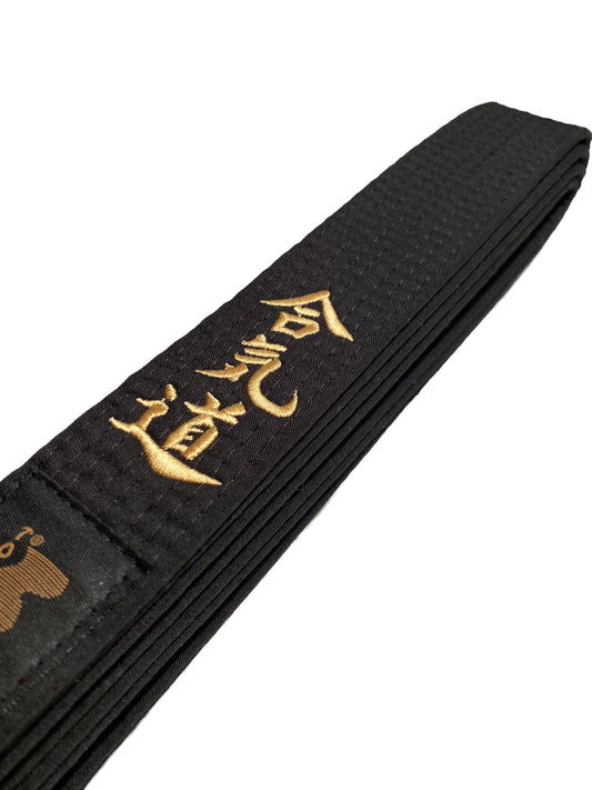 TEKKA BUDO Aikidogürtel schwarz - Bestickt - Aikido - Schriftzeichen Bestickung gold - Schwarzgurt Kanji japanisch
