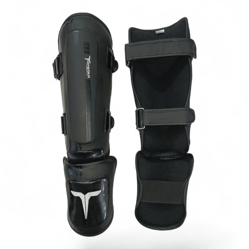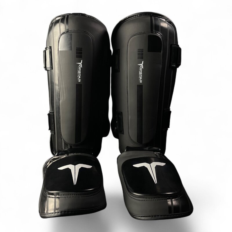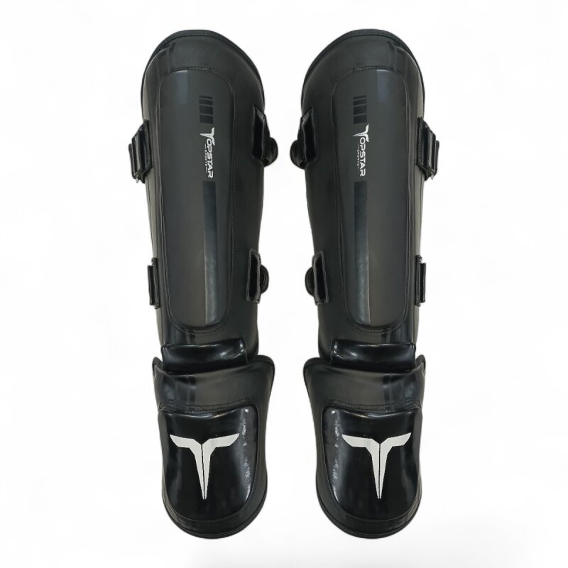 Die PU-Kunstlederoberfläche ist robust und leicht zu reinigen; nach der Einheit einfach abwischen und lufttrocknen lassen. Mit den verstellbaren Klettverschlüssen stellst du den Sitz passgenau ein – rutschfrei bei Low-, Middle- und High-Kicks sowie im Clinch. Das komplett schwarze Design fügt sich nahtlos in jedes Club- oder Team-Outfit ein.
